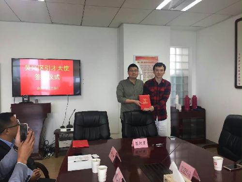 5月9日上午,我区正式聘请乌克兰国立技术大学博士殷承亮、乌克兰国立建筑大学MARYNA女士为吴兴区驻乌克兰引才大使,并在区委组织部会议室举行了简约的签约仪式。两位引才大使表示,将积极为吴兴招引专业对口、有意向服务吴兴经济发展的有识之士。 近年来,吴兴区通过“以才引才”的模式引揽了一大批促进经济发展,加速产业转型的高科技人才,有效推动吴兴区打造经济发展新引擎。